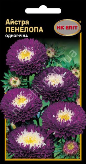 Однорічна рослина. Кущ пірамідальний, гіллястий, висотою 70см і шириною 45-55см. Квітконоси середньої міцності, довжиною 35-40см. Суцвіття фіолетово-синього забарвлення з біло-жовтою серединою, плоско-кулястої форми, густо махрове, діаметром 12-15см. Зацвітає в кінці серпня і цвіте аж до заморозків. Використовується для зрізу, висаджують на клумбах. Насіння на розсаду висівають в кінці квітня на початку травня.