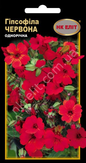 Невибаглива рослина з тонкими сильно розгалуженим пагонами, висотою - 40-50 см, утворюють кущ. Червоні дрібні квітки (діаметром до 1 см) зібрані в пухкі широкі суцвіття. Цвіте дуже рясно в червні-липні, близько трьох тижнів. Гіпсофіла зацвітає через 1,5 місяці після посіву, можна сіяти в декілька сроків на протязі літа. Використовують для озеленення і оформлення букетів. Холодостійка, світлолюбна і досить посухостійка рослина.