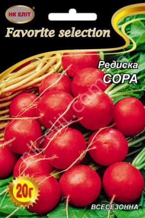 Раннеспелый - 20-23 дня. Листья небольшие. Корнеплоды круглые, темно-красного цвета, массой 30-35 г, диаметром 4-5 см. Мякоть белая, слабо-острый, сочный. Урожайность 1,4-2,2 кг/м2. Вкусовые качества отличные. Используют в свежем виде. Культура холодостойкая. Очень долго сохраняет товарные качества. Хорошо переносит засуху. Устойчив к цветухе. НЕ трухлявеют. Выращивают, как весной, так и осенью. Во влажной почве всходы появляются на 6-7-й день после посева. Глубина посева 2-3 см.