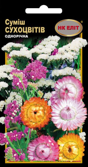 Однолетник. Высота растения 40-80см. Диаметр цветка 2-7 см.Смесь сухоцветов станет очень популярной в вашем саду, а зимой Вы сможете наслаждаться оригинальными цветочными композициями созданными собственными руками. Срезанные полу распущенные цветы и заботливо высушенные прекрасно сохранят свой первоначальный цвет до весны. Выращивают в сборных цветниках и рабатках.