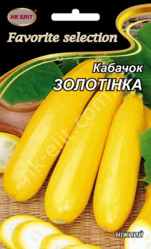 Раннеспелый - 45-50 дней. Растение кустовое. Плод цилиндрическо-овальной формы, золотисто-желтого цвета. Мякоть светло-желтого цвета с нежным сладким вкусом. Урожайность 4-8 кг/ м2. Используют для переработки и консервирования. Сбор урожая до первых заморозков. Золотистый цвет плодов при консервировании сохраняется.