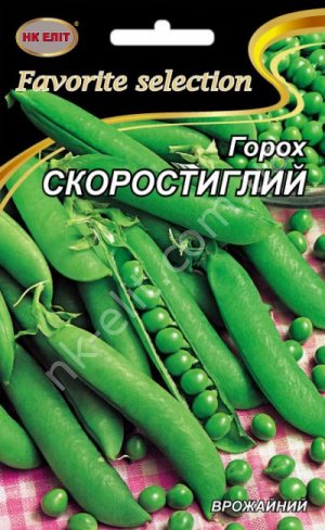 Дуже ранній овочевий сорт. Вегетаційний період від сходів до технічної стиглості – 51-59 днів. Стебла висотою 55-60см. Боби довжиною 8-9см, широкі, темно-зеленого кольору, містять 7-8 великих горошин, чудових смакових якостей. Сорт стійкий до хвороб, вирізняється стабільною врожайністю. Висівають насіння у відкритий ґрунт. Рекомендується для споживання у свіжому вигляді та для консервування.