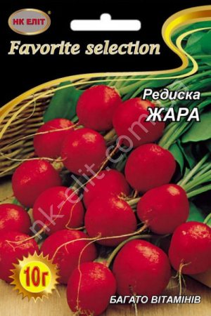 Ранньостиглий – 18-27 днів. Коренеплоди червоно-малинові, округлі або овальні, діаметром 3-3,5см, масою 13-27г, майже повністю заглиблені в землю. М’якуш білий та біло-рожевий, щільний, соковитий, слабо гострого смаку. Урожайність 1,5-2,3 кг/м2. Смакові якості добрі. Використовують у свіжому вигляді.