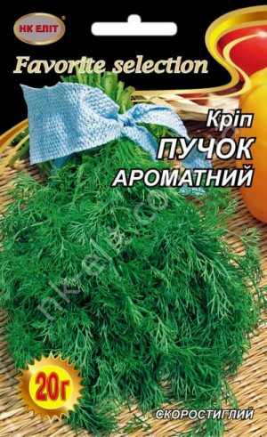 Скоростиглий сорт. Період від сходів до збору на зелень – 31-42днів, до початку цвітіння -69-75 днів. Цінність сорту: підвищений вміст ефірних олій. Розетка листків стояча, листки з сильно розсіченими сегментами, забарвлення темно-зелене, з сизим відтінком, соковиті, ароматні. Настій з насіння використовують при хворобах печінки, судорогах, при порушенні функцій органів травлення та ін.. Використовують в свіжому, сушеному, замороженому вигляді та для консервування.