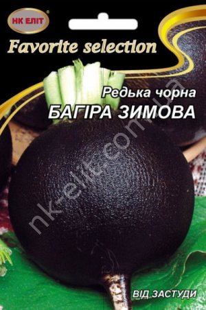 Середньостигла - 90-110 днів. Коренеплід плескато-округлий, чорний, масою 280-450г. М’якуш білий, щільний, соковитий, має приємний слабо гострий смак. Урожайність до 9 кг/м2. Має високі смакові якості. Добре зберігається до весни. Для літнього та зимового використання, при лікуванні застуди.